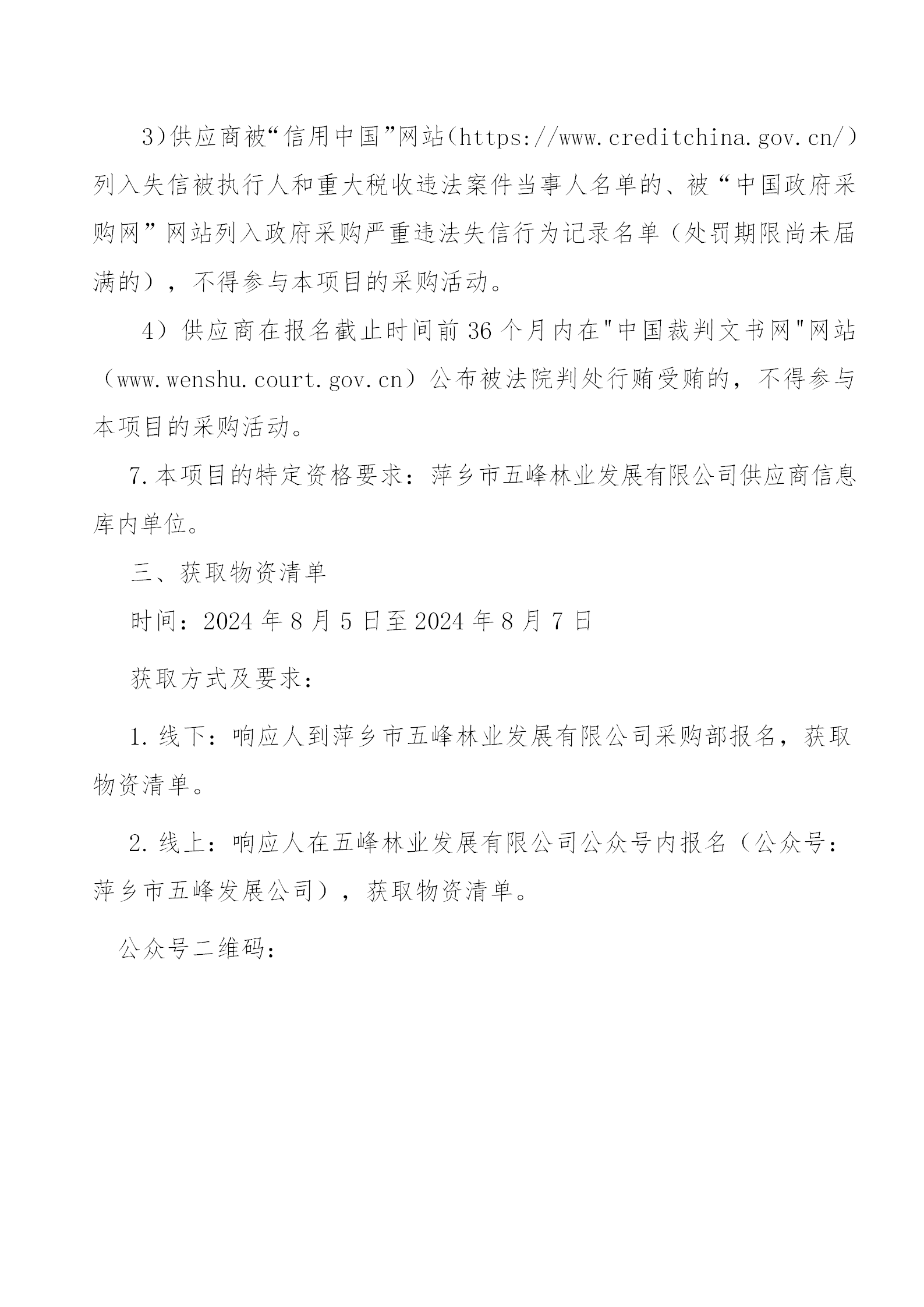萍鄉(xiāng)市五峰林業(yè)發(fā)展有限公司2025年度供應(yīng)商招募啟事