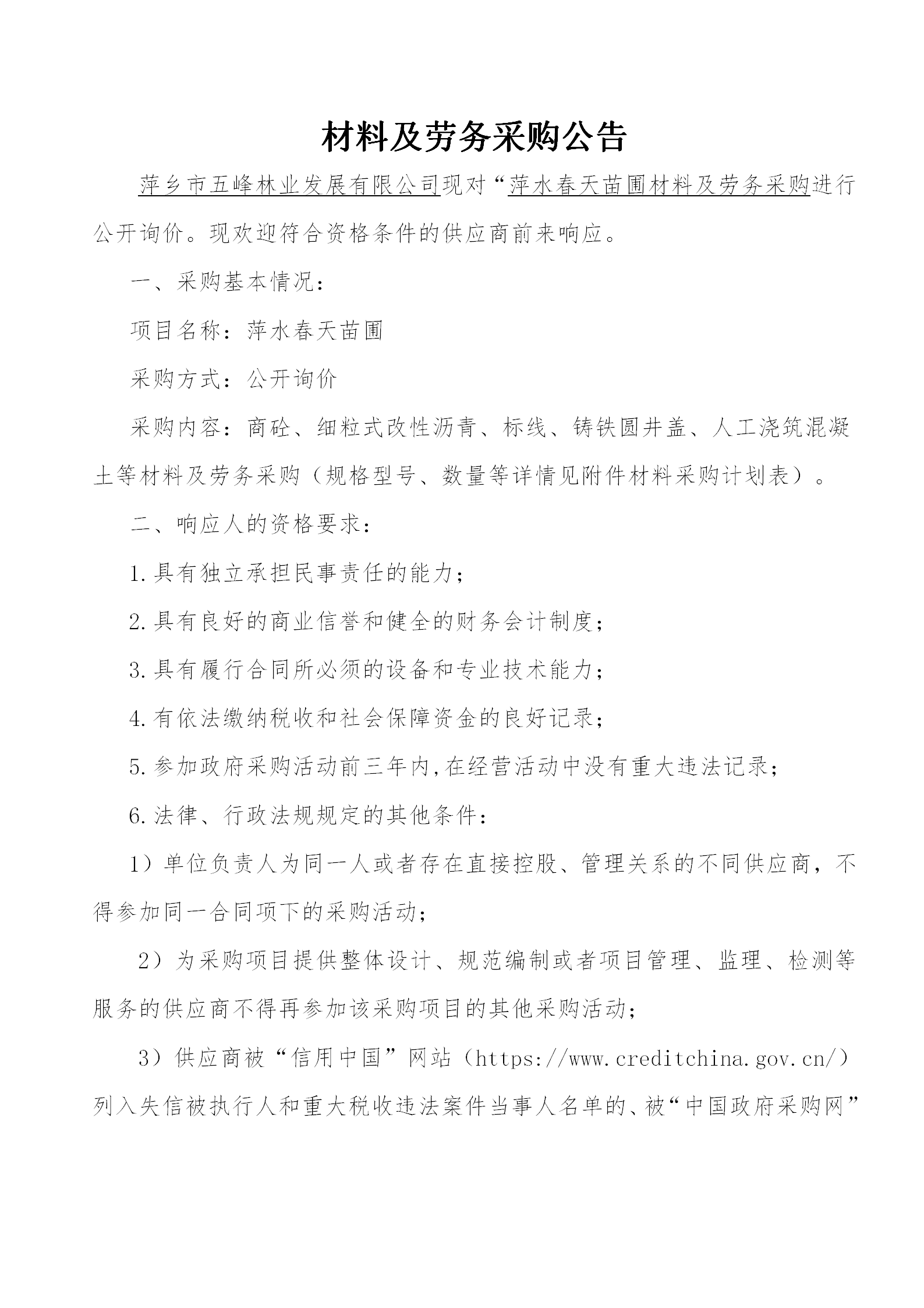 萍鄉(xiāng)市五峰林業(yè)發(fā)展有限公司2025年度供應(yīng)商招募啟事