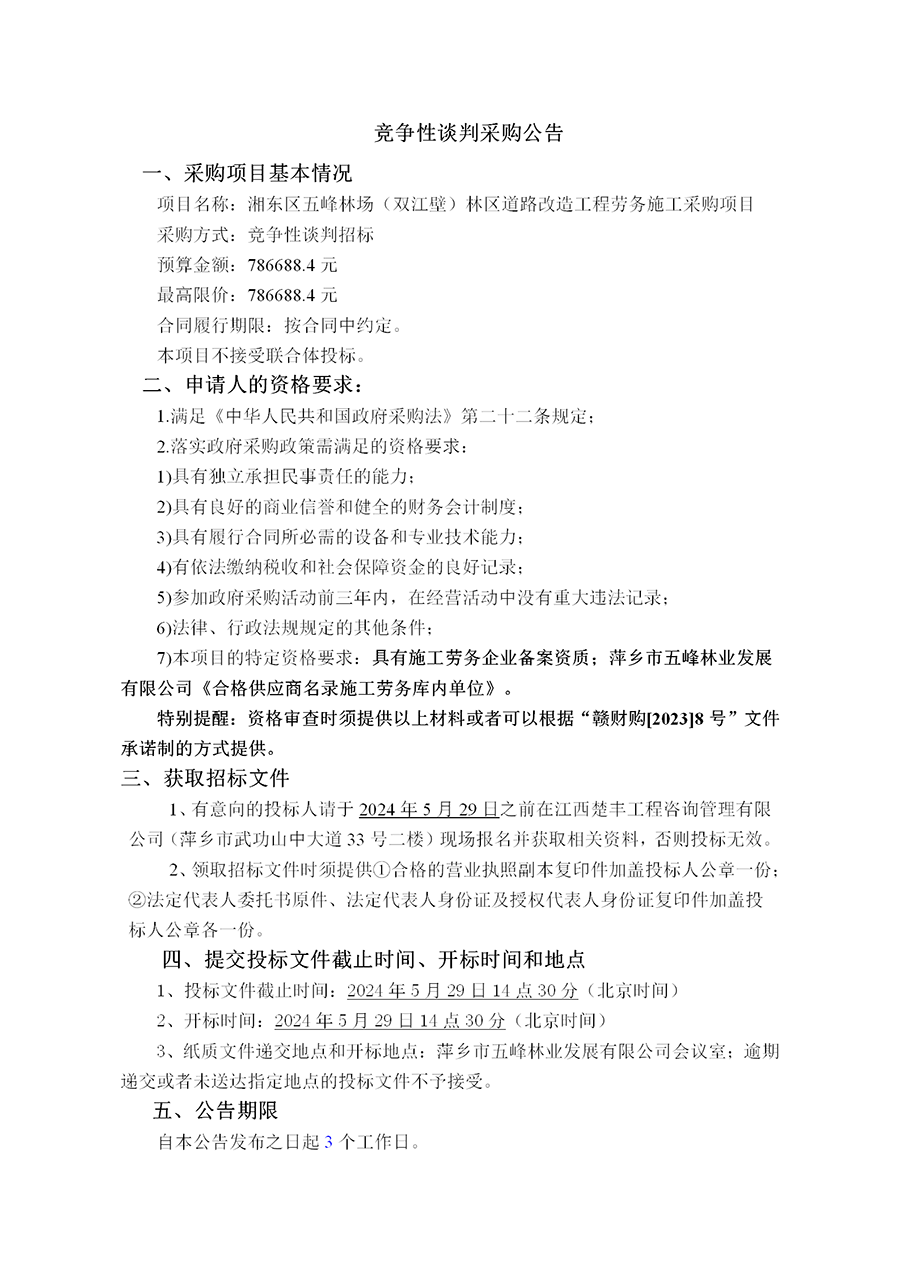 萍鄉(xiāng)市五峰林業(yè)發(fā)展有限公司2025年度工程專業(yè)承包供應(yīng)商、施工勞務(wù)供應(yīng)商、工程服務(wù)供應(yīng)商預(yù)選庫建立項(xiàng)目招標(biāo)公告