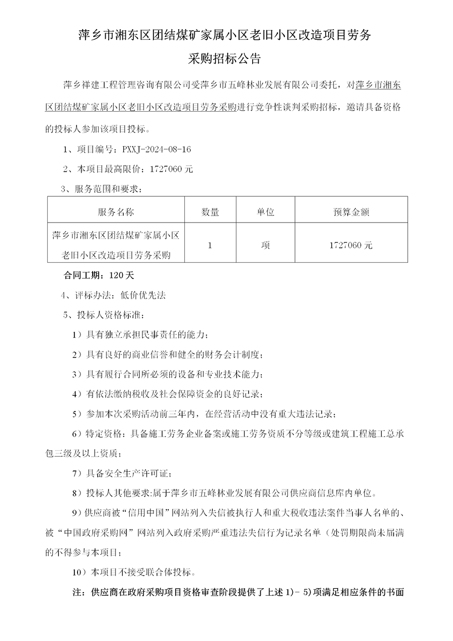 萍鄉(xiāng)市五峰林業(yè)發(fā)展有限公司2025年度工程專業(yè)承包供應(yīng)商、施工勞務(wù)供應(yīng)商、工程服務(wù)供應(yīng)商預(yù)選庫(kù)建立項(xiàng)目招標(biāo)公告
