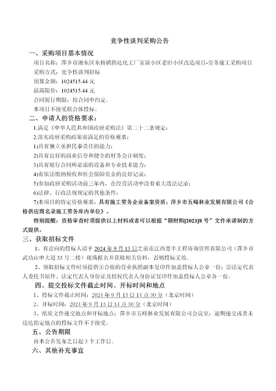 萍鄉(xiāng)市五峰林業(yè)發(fā)展有限公司現(xiàn)對“萍鄉(xiāng)市湘東區(qū)新棚里小區(qū)老舊小區(qū)改造項目材料采購進行公開詢價?,F(xiàn)歡迎符合資格條件的供應(yīng)商前來響應(yīng)。