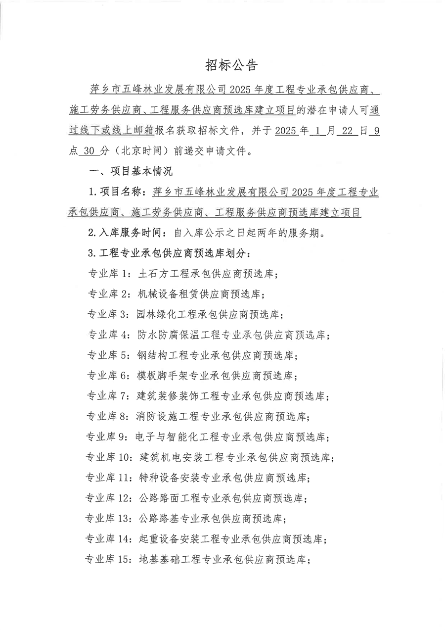 萍鄉(xiāng)市五峰林業(yè)發(fā)展有限公司2025年度供應(yīng)商招募啟事